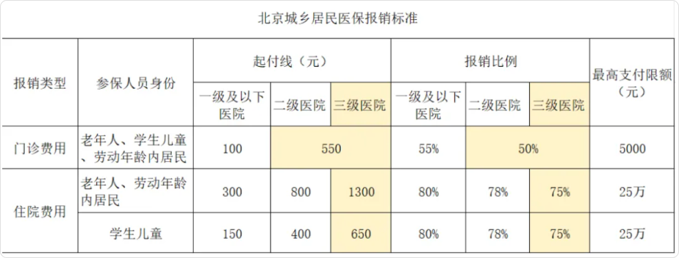 Q. 北京城乡居民医保报销标准
